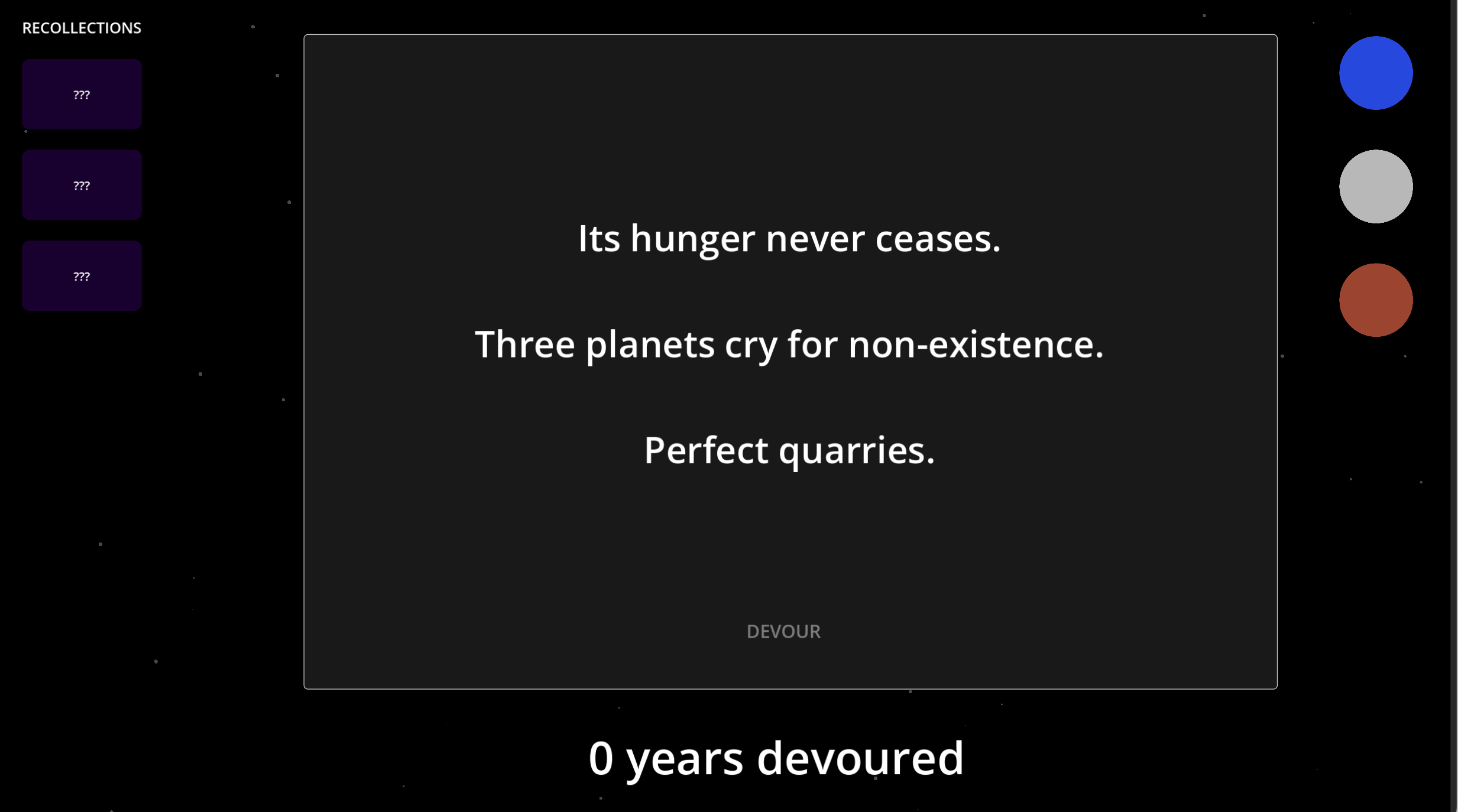 Click one of the planets and click the Devour button to start devouring. Unlocks will upgrade as time is devoured.